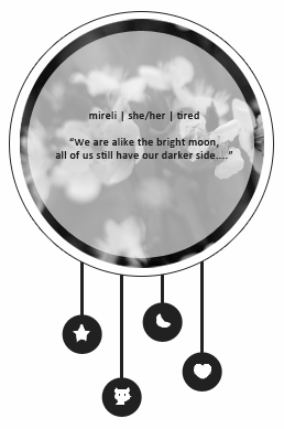 this: Just that the flower shape design could be replaced with an "X" shaped design. The name to be "Nukunishii" and the age to be replaced with " Tord" and have a heart next to it. And you know where the heart is on that layout of yours? replace it with a gun symbol... if this is confusing im so sorry-But thanks!